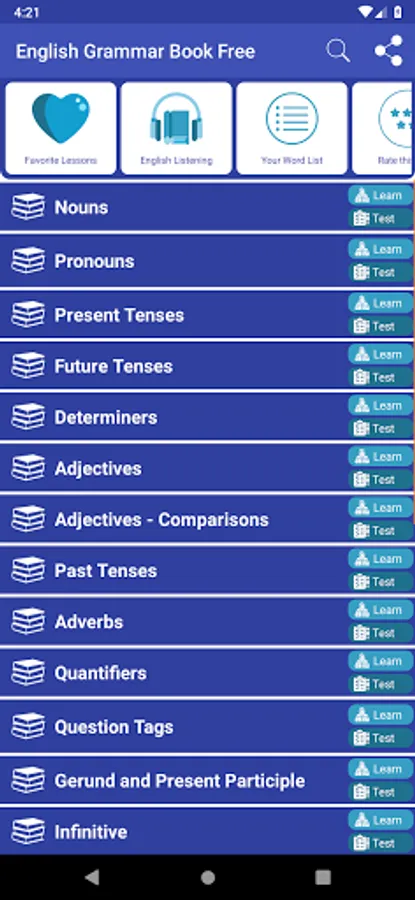 English Grammar Book is an application for android to help student and everyone who learning English to develop their English Skill.