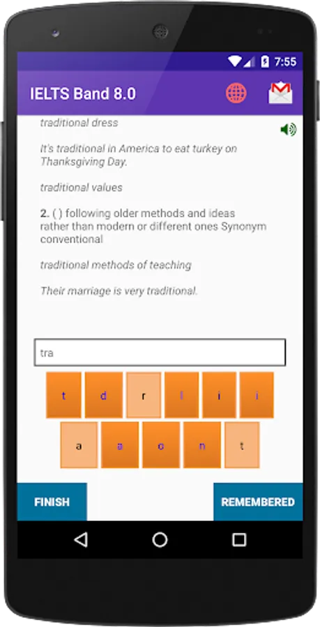 In the IELTS , you have to face with the high number of vocabularies. Therefore, we offer you this totally free application, which helps you to overcome easily the difficulty of remembering numerous vocabularies.