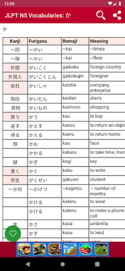 + JLPT N5 - Kanji: Help you to learn Kanji and after learn, you can test your kanji the same way as the JLPT N5 exam.