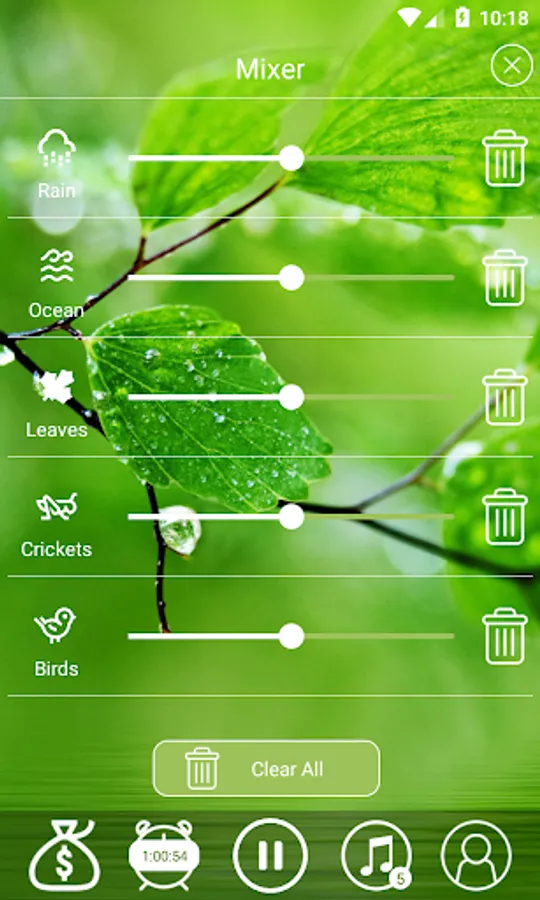 Contains nearly 100 high quality relaxing sounds (all free) for any mood, divided in the following categories: