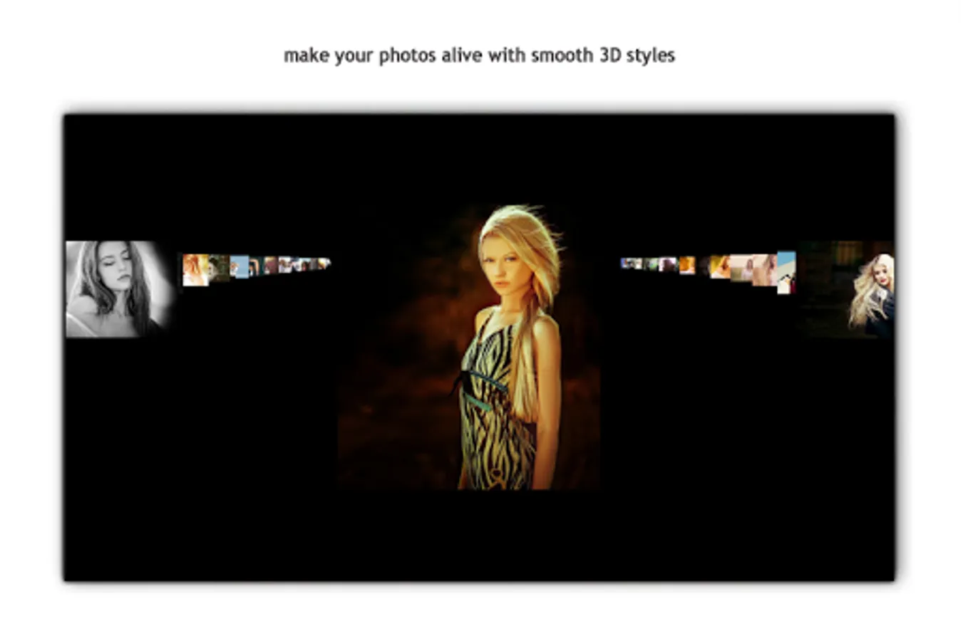 Make your gallery photos alive with 3D styles like spiral, helix, circle and many more.