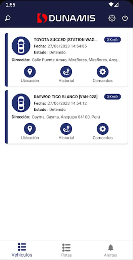 Dunamis is an application that allows the visualization of your mobile assets through GPS and online monitoring systems