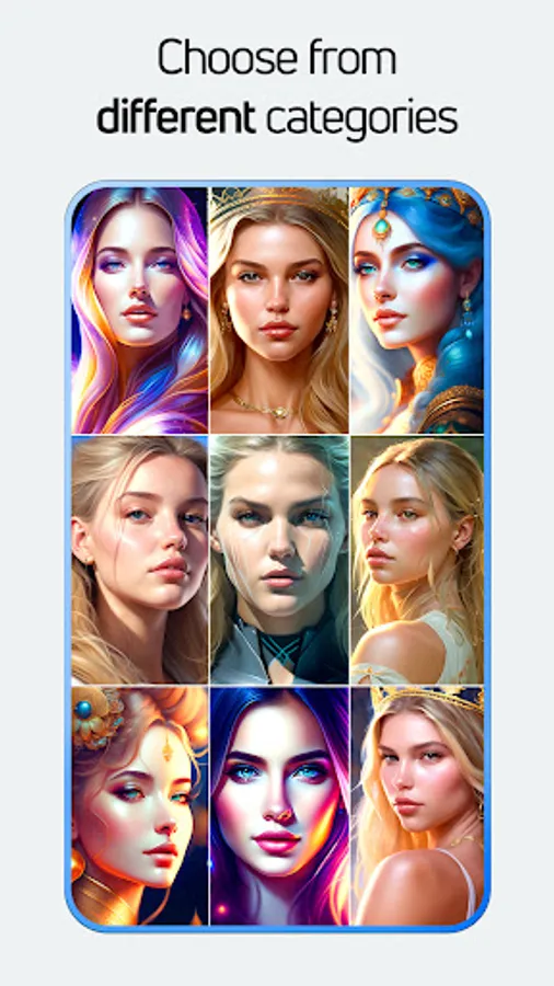 With our innovative state-of-the-art technology, you can surprise your friends with art avatars that have never been seen before. All you have to do is choose your best 10-20 images according to our app guidelines, sit back and relax while we create wondrous Avatars for you in art styles of your choice.
