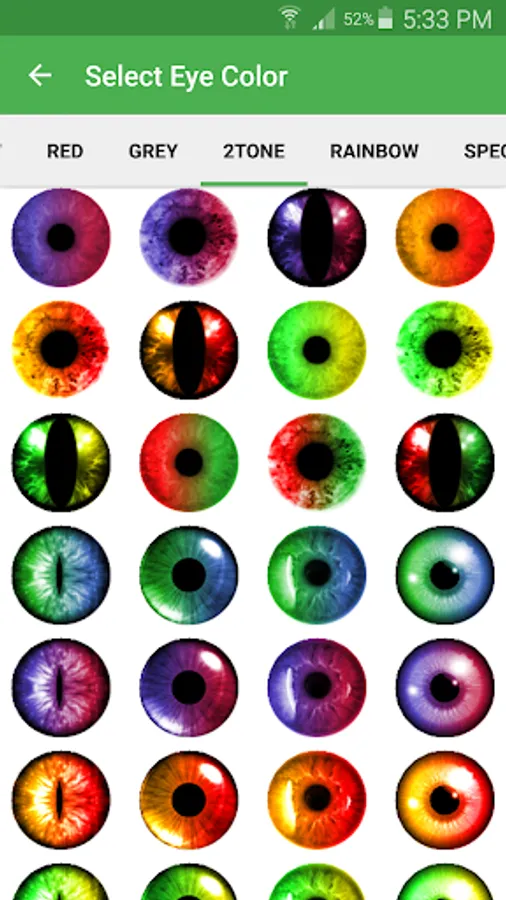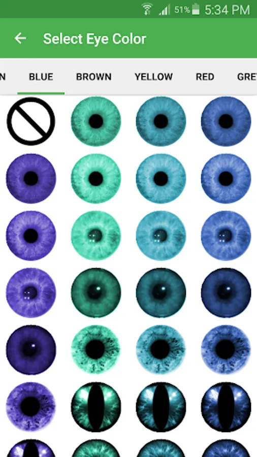 • Many realistic and natural eye colors to choose from.