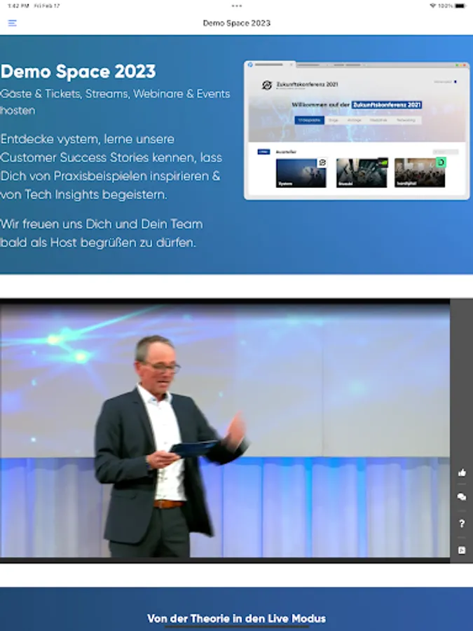 Take part in an event, you can expect video content or video meetings with high video and sound quality.