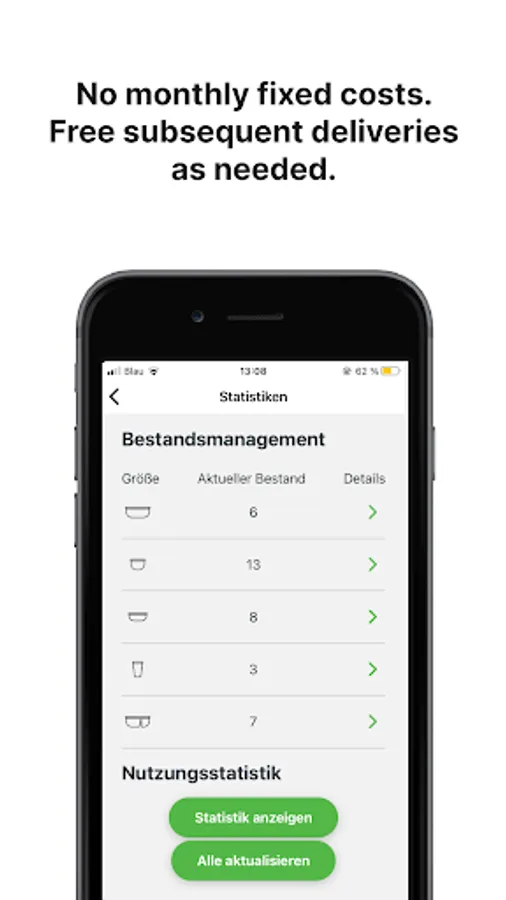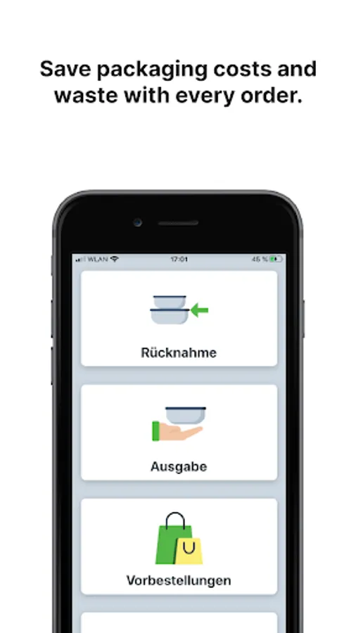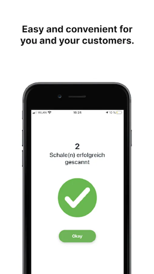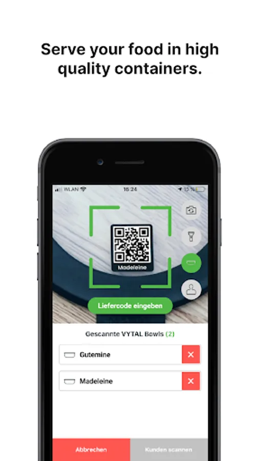 The app allows you to participate in the VYTAL reusable system quickly & easily - no upfront investment costs. You only pay if you actually save packaging costs and waste. Simply scan the QR code on the lid of the container and in the customer app before handing it out to the customer. Simple and cashless.