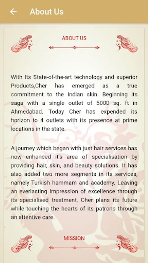 Cher Hair and Beauty Lounge is a Prominent Salon, Based in Ahmedabad & Surat, India. This Application is made in a view to connect with our clients and with public. The Application is made with utmost simplicity and user-friendly interface which enables our users to view informations About Us, Services provided by Us, Social connectivity and Branches. The Application has all vital information about our origin and the journey, with a brief outlook of our services and rate cards, Our social handles and an interface to connect with us and stay updated. It also helps you to navigate to our nearest branch depending on the area you are located in Ahmedabad or Surat, India. We hope that you’d love this application feel free to write your feedback on info@cherhbl.com.