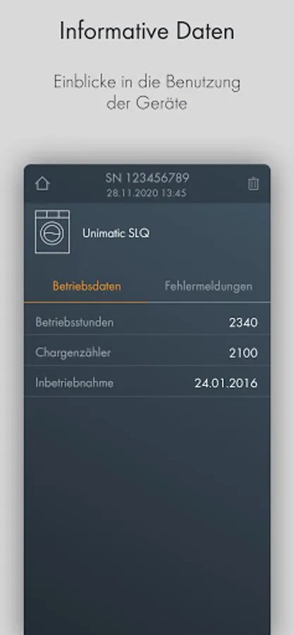 The V-Connect app shows you the operating data "operating hours" and "batch number" as well as the date on which the household appliance was commissioned.