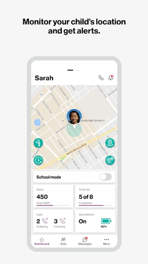 • Monitor your child’s location and receive alerts while they’re out and about.