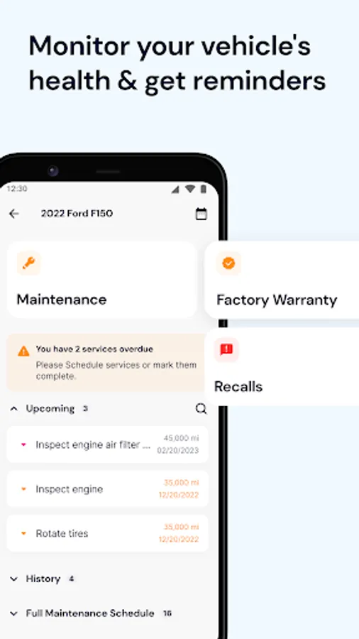 • Connect your vehicle over air for automatic updates to your vehicle health, maintenance and product life span