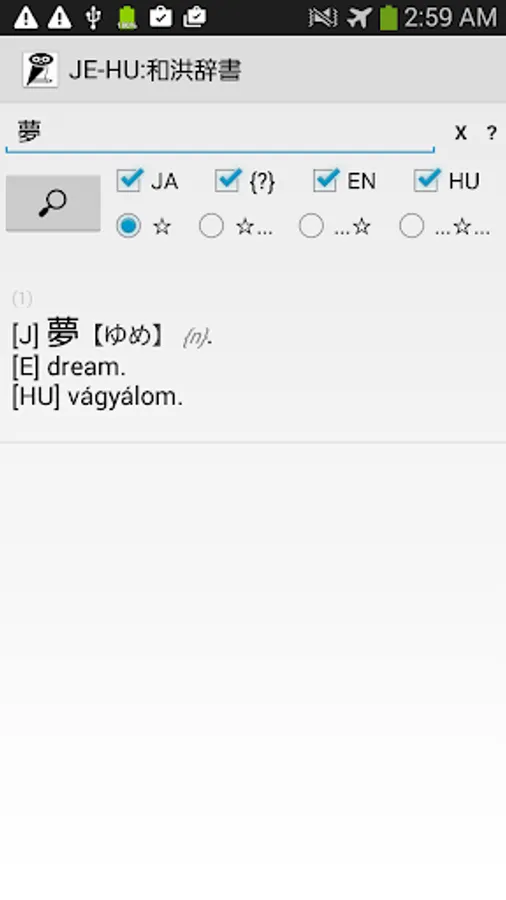 Minimalistic database app based on the Japanese, English and Hungarian entries of the amazing JMDICT file (as of March 2017).