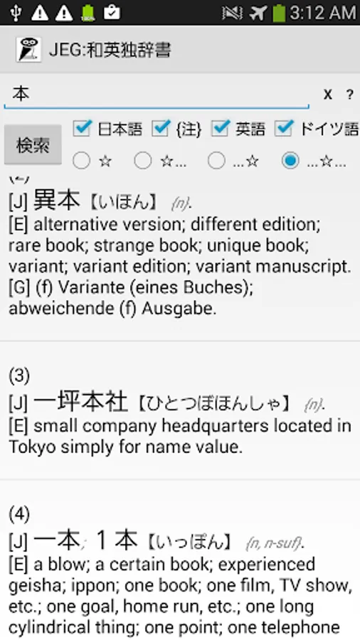 Minimalistic database app based on the Japanese, English and German entries of the amazin EDICT file (as of March 2017).