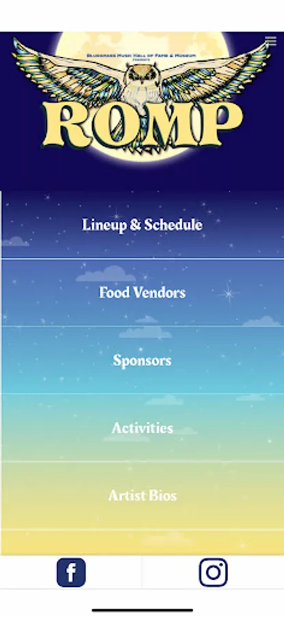 The ROMP Fest app is designed for all festival-goers to maximize the ROMP experience. From stage schedules, vendor listings with menus, workshop and kids zone schedules, the rompfest app provides up-to-date info on the happenings during ROMP.