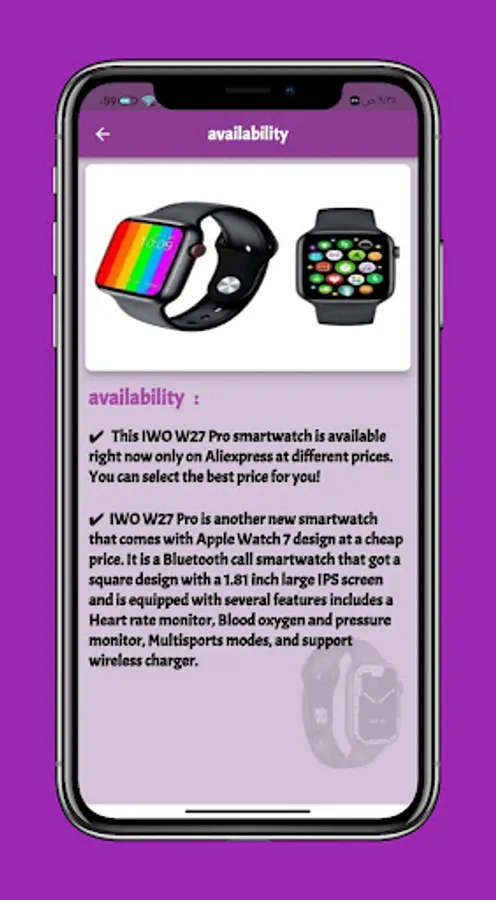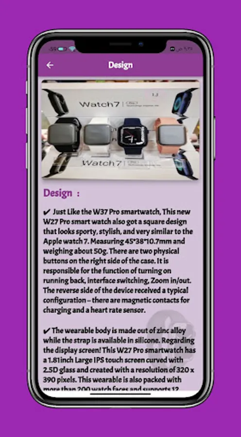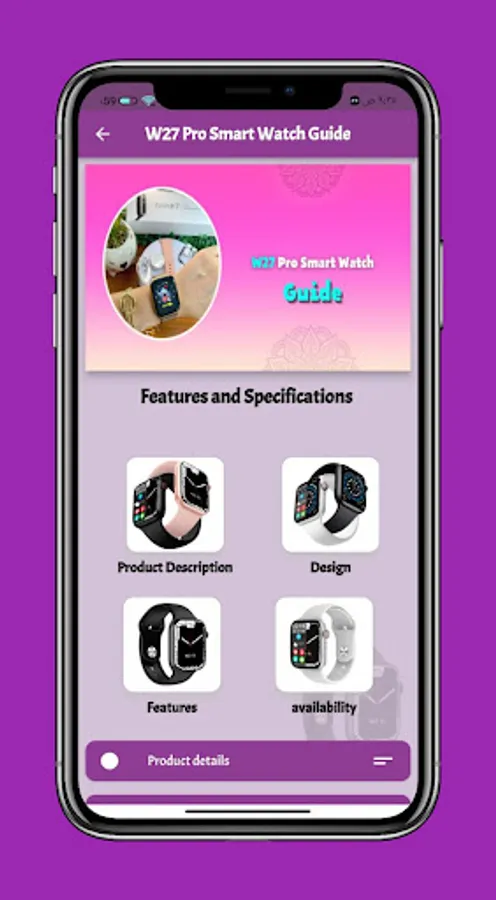 - Contains many pictures to see all designs of W27 Pro smart watch.