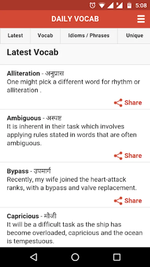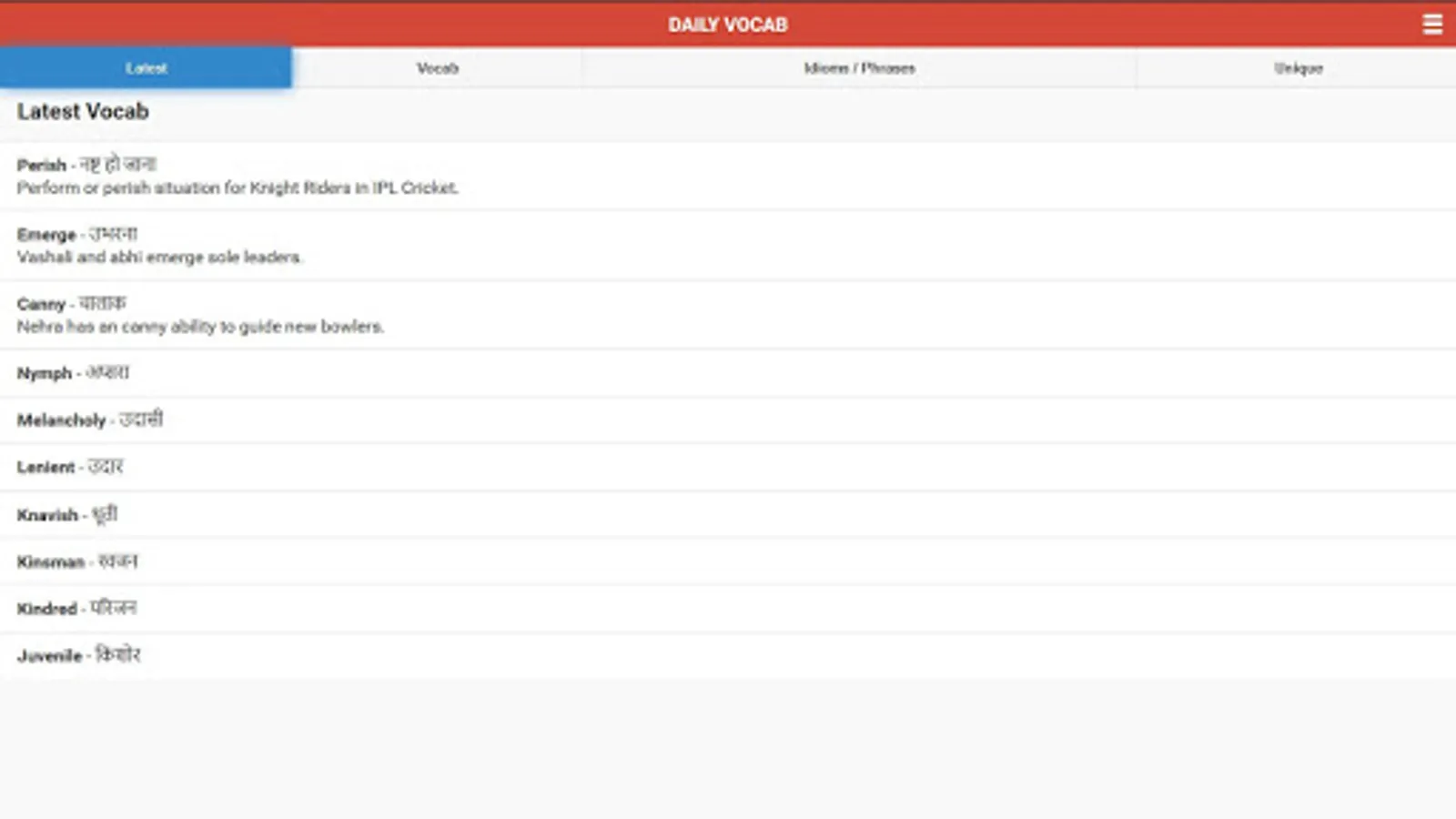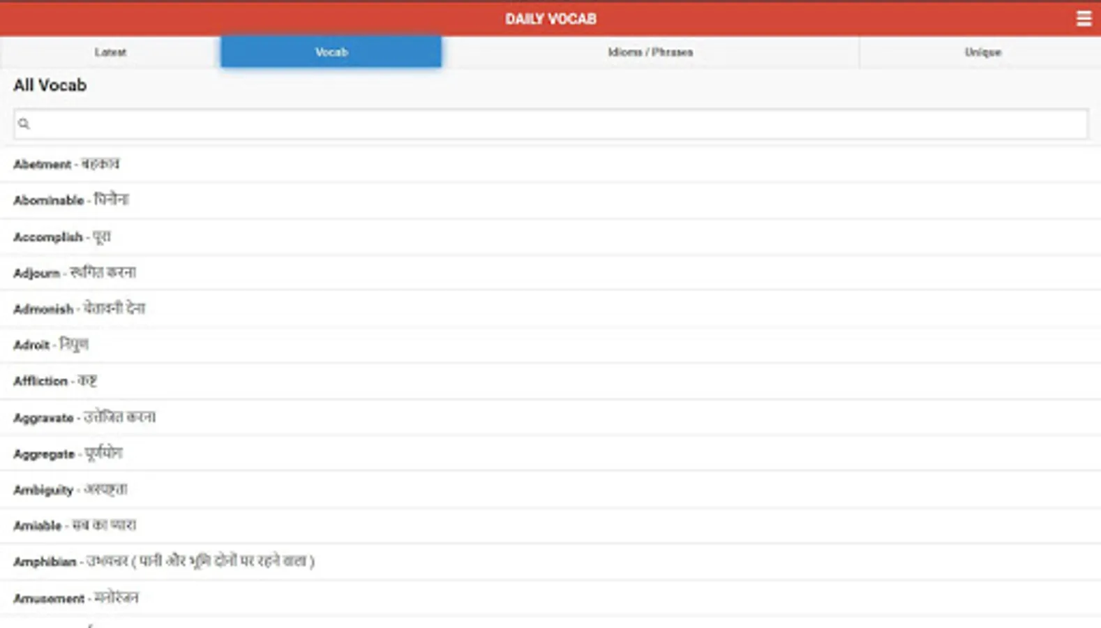 We provides the English vocabulary, idioms & phrases and some special words which are basically taken from news papers like The Hindu , Hindustan Times.