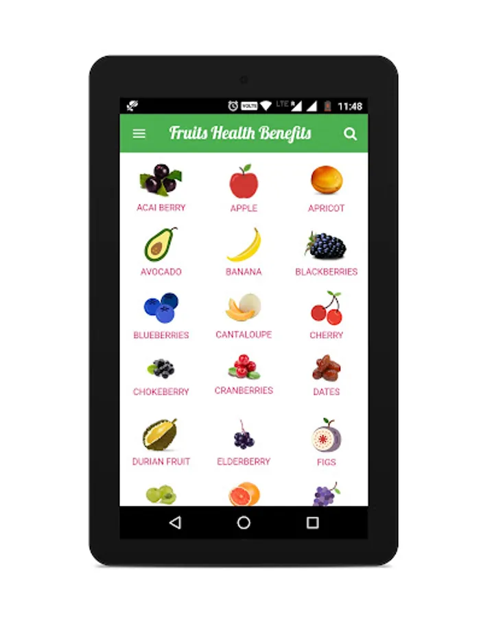 "Fruits For Health" Give You the list of Fruits and their Benefits.