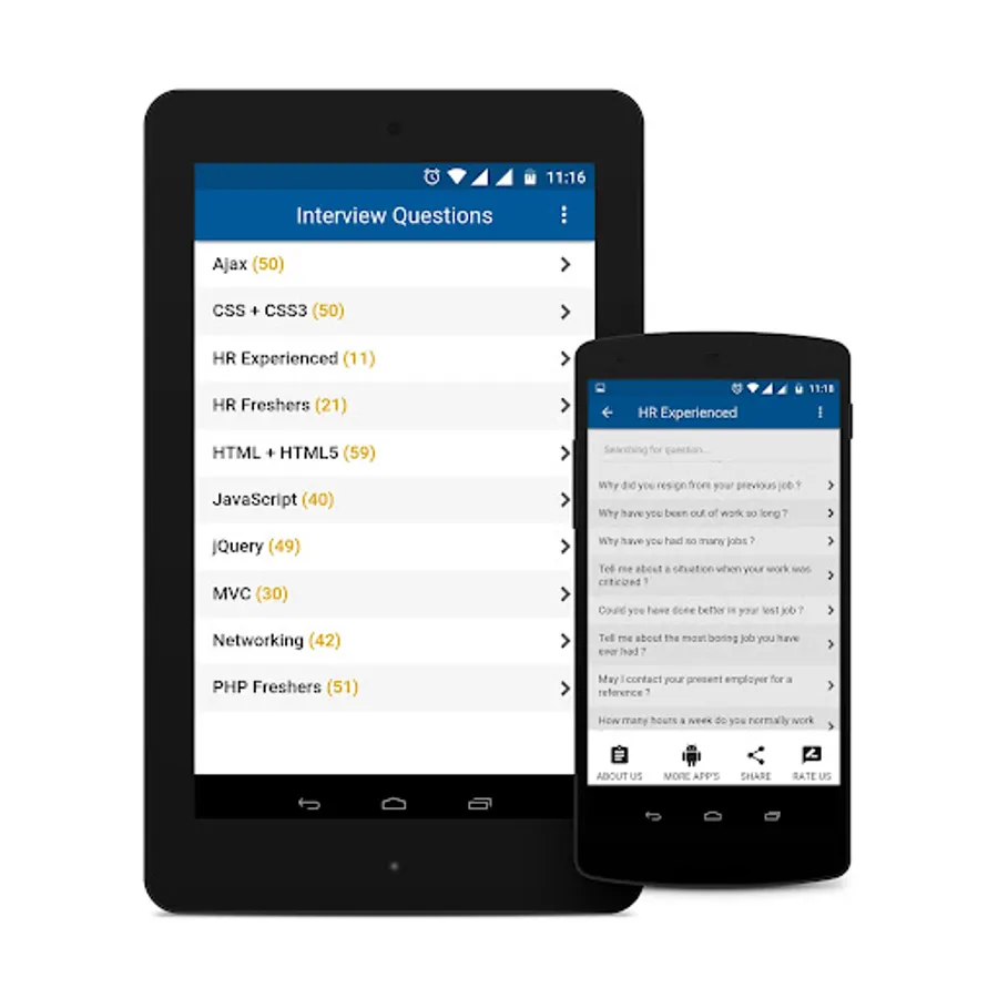 We tried to cover all the topics of IT (PHP, UI, CSS, HTML, Ntworking, MVC),BPO, Air hostess cabin crew jobs. which are asking in interviews