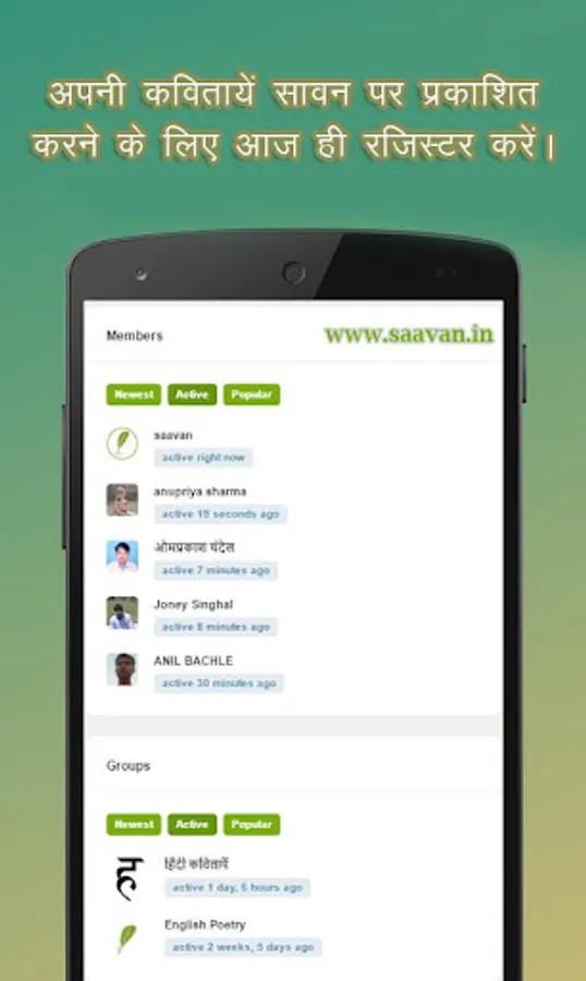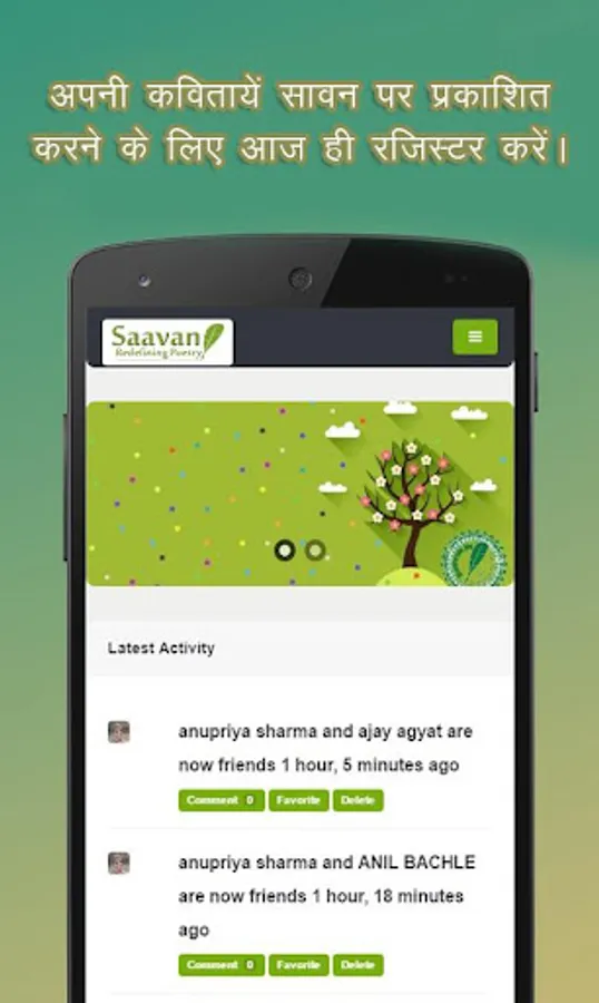 At Saavan, you can weave a personal network on the World Wide Web with countless readers, potential friends and someone special! Never let even a single good line to get away, just pen down on the beautiful pages of Saavan.