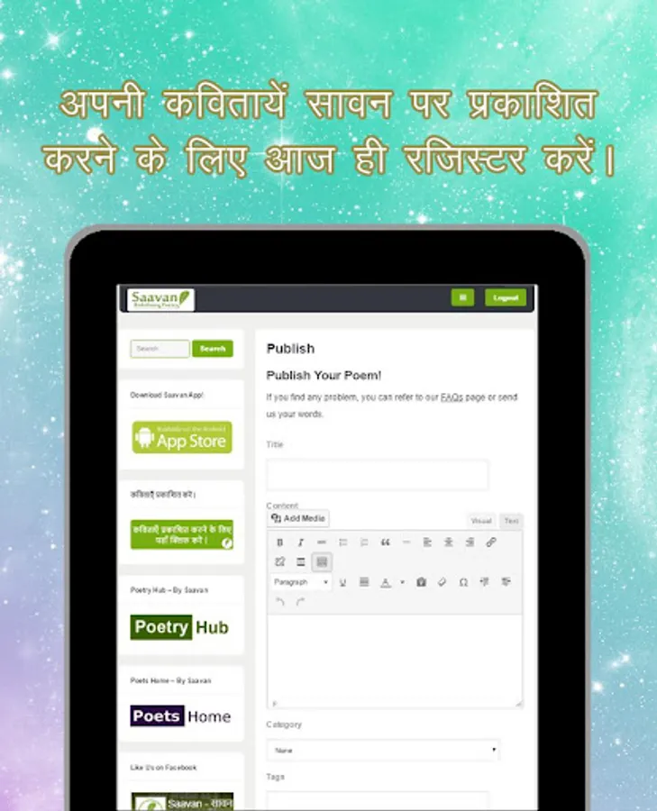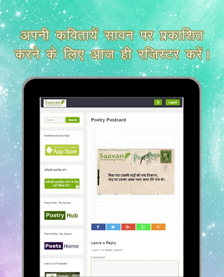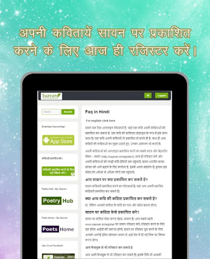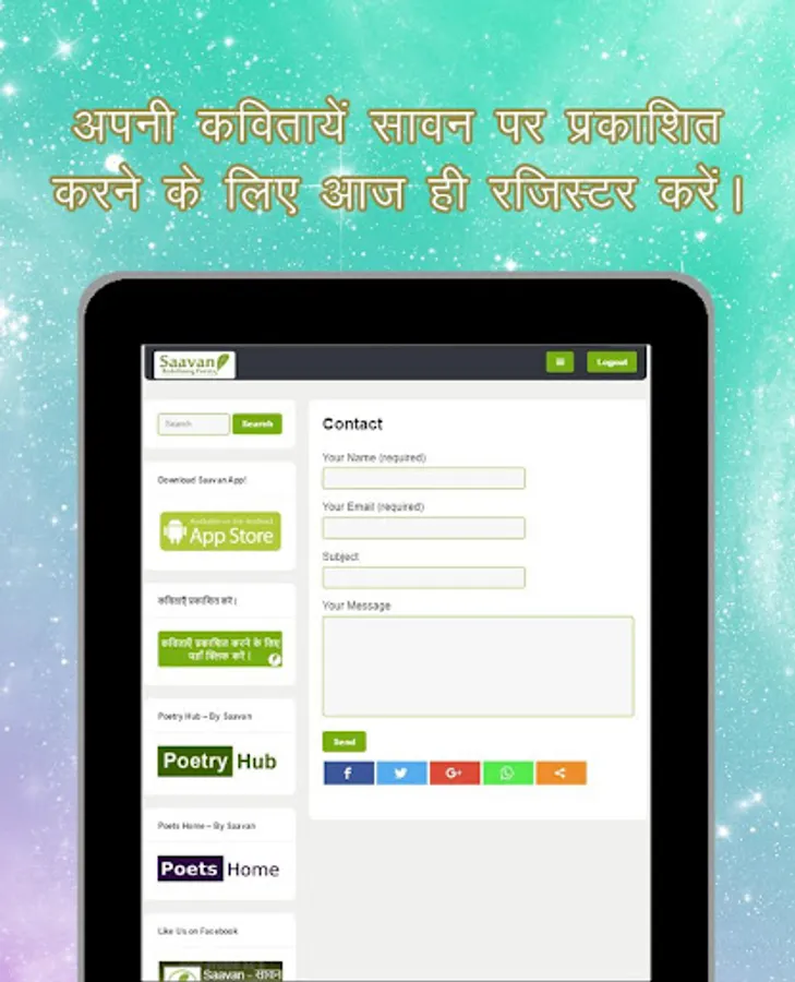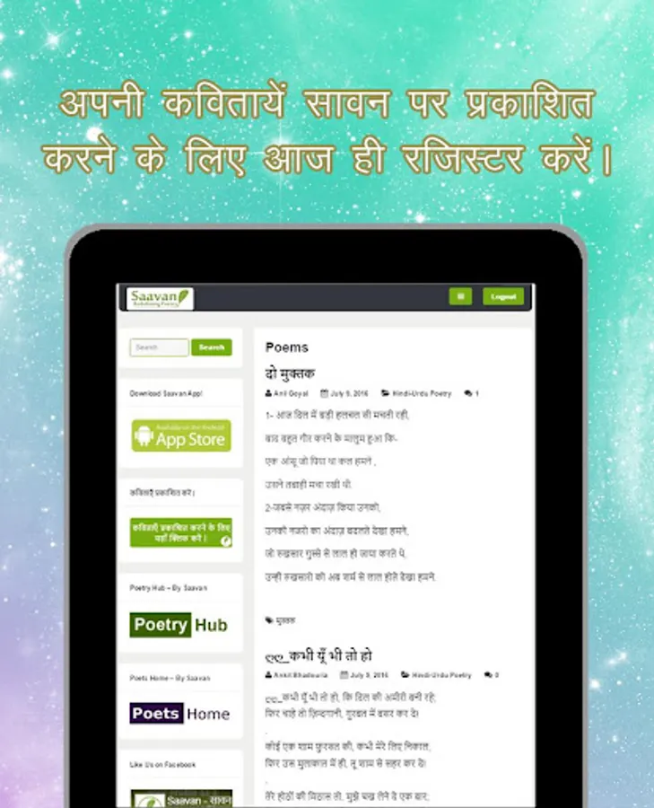Saavan is a user-driven platform for you to read and share poetry. It is a community of people with common interest in poetry.