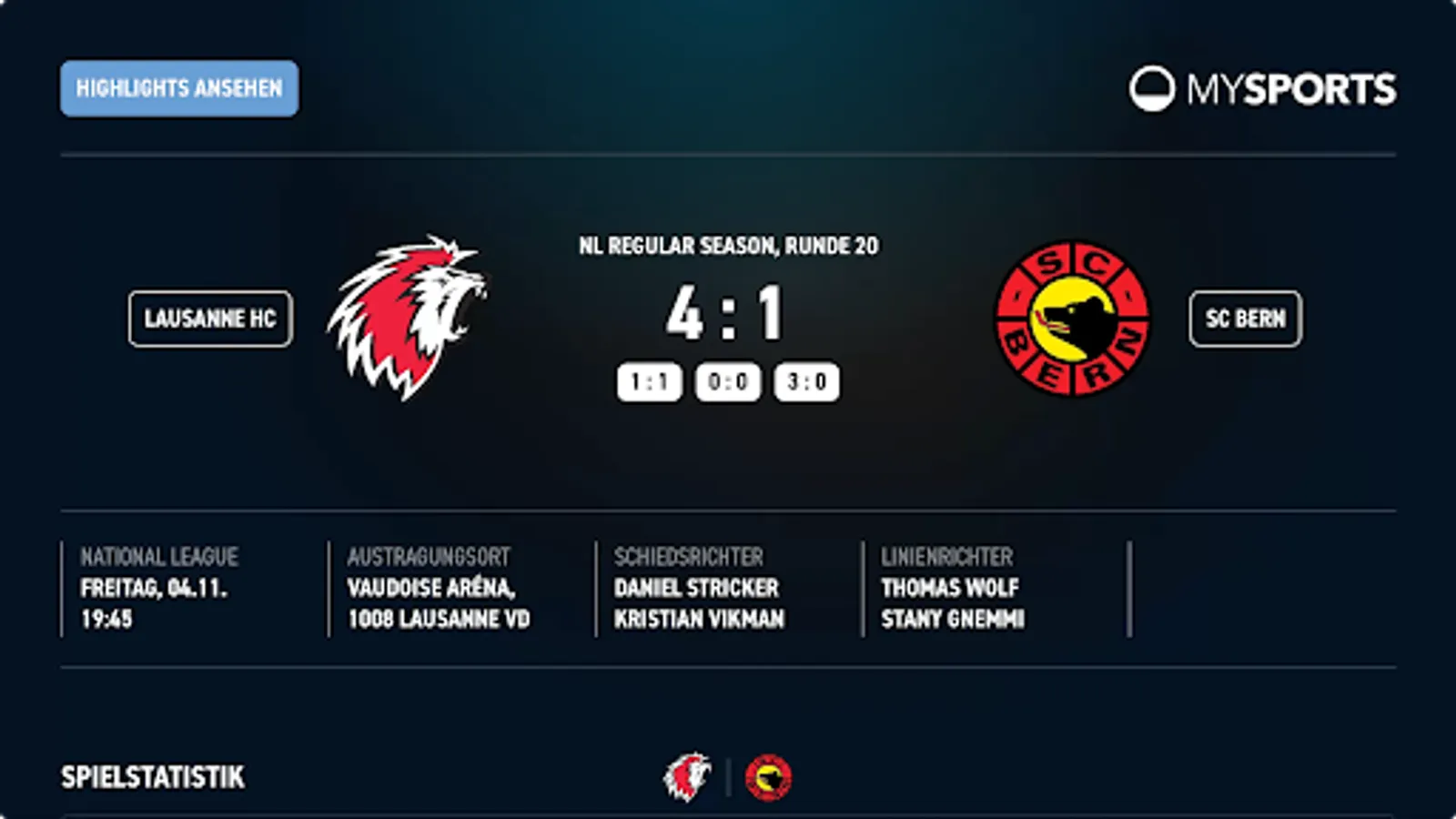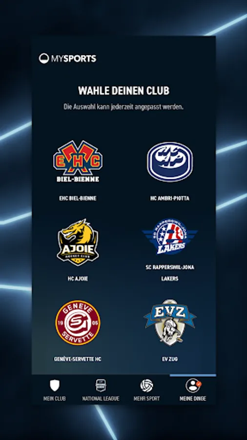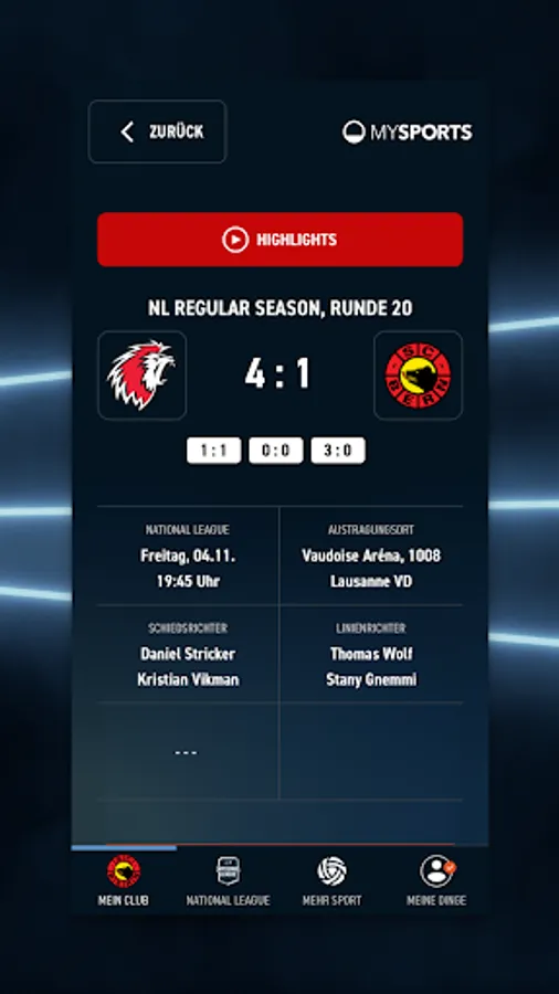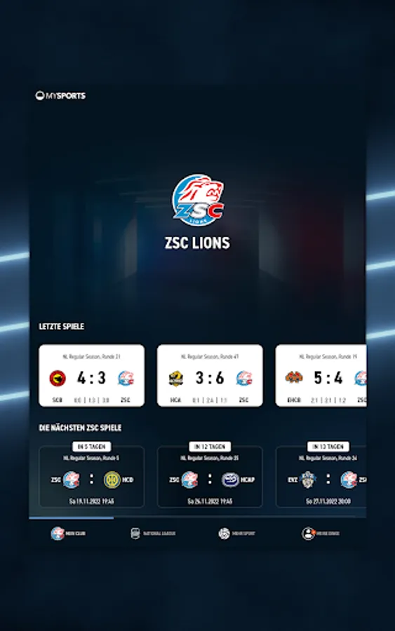 MySports - this is hockey. You can now stream all National League ice hockey games on your mobile phone, tablet or SmartTV. We also offer exclusive behind-the-scenes glimpses of your favorite clubs like ZSC Lions, SCL Tigers, or HC Ajoie. We accompany players, coaches and the staff up close. But the MySports app offers much more, here are the functions at a glance: