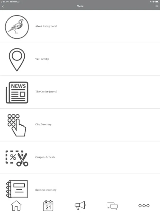 The Crosby app is an app designed for residents and visitors of Crosby, ND. The app is a community-reflective app that connects and empowers Crosby residents and visitors with critical, timely and relevant content they want to see. Content includes but not limited to articles, events, videos and resources.
