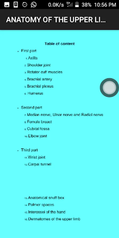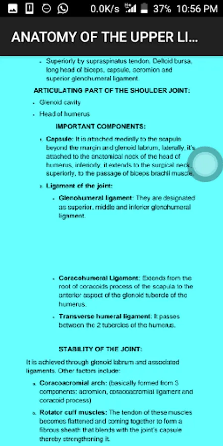 This app contains the multiple choice questions (MCQ), theory and sub-objective questions of the following sections in Anatomy: