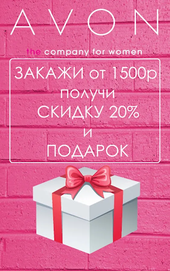 For new Avon Representatives - Place an order over 1500 rubles, get a 20% discount and a Gift.