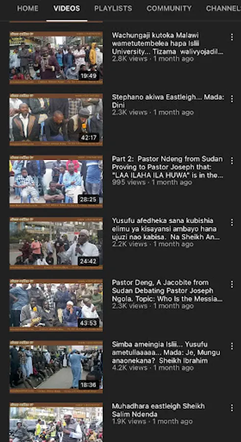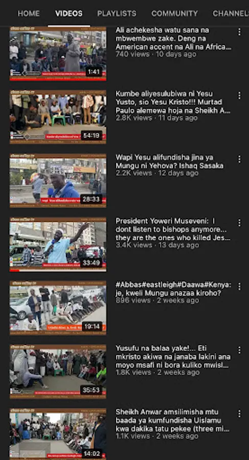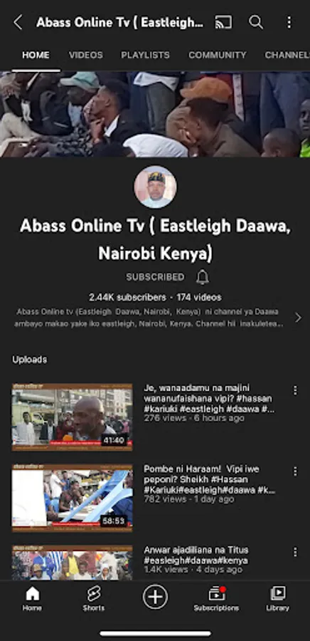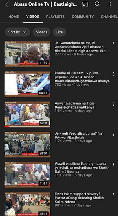 Abass Online tv (Eastleigh Daawa, Nairobi, Kenya) ni channel ya Daawa ambayo makao yake iko eastleigh, Nairobi, Kenya. Channel hii inakuletea Mihadhara mbali mbali kila siku...waalimu mbali mbali hushiriki katika mijadala hizi. malengo ikiwa ni kufikisha ujumbe wa uislamu kwa wasiokuwa waislamu kupitia mijadala hizi. matukio haya yanavyoendelea ndivyo tunavyorekodi na kuiweka katika mitandao ili ujumbe huu uwafikie watu wengi zaidi. hivyo ni vizuri kila unapoipata video mpya.. bonyeza kitufe cha like na pia share katika groups za whatsapp na facebook ili uweze kushiriki katika kueneza ujumbe huu. ukiwa na swali lolote wasiliana nasi katika whatsapp +254724871565