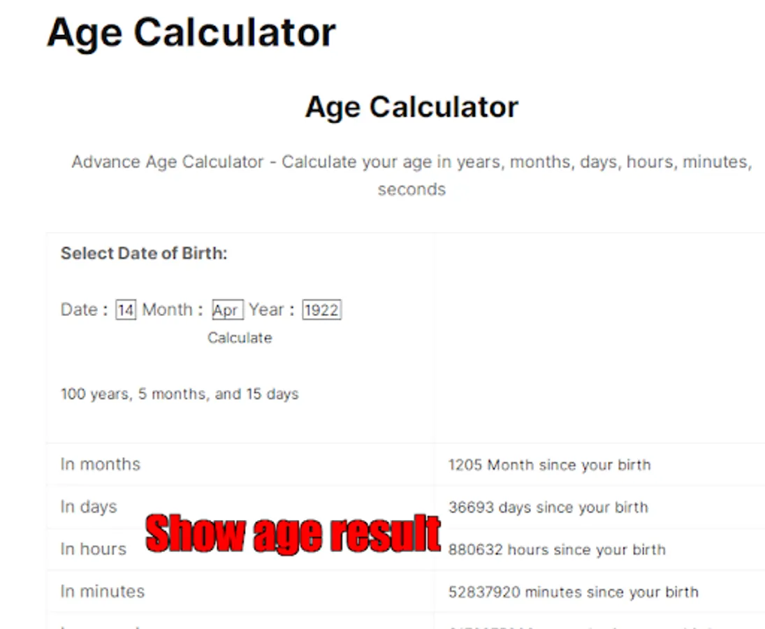 Using your birth date and the current date, you can use an online age calculator to determine your age.The tool aids in determining the Age Calculator