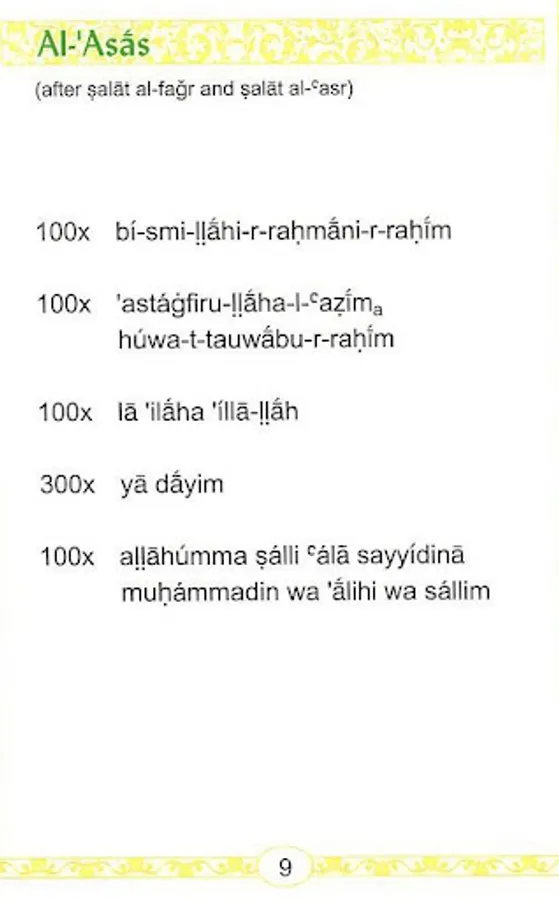 International transcription and pronunciation of the Burhaniya Awrad