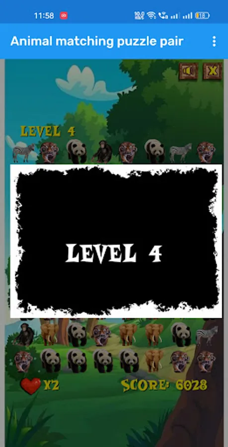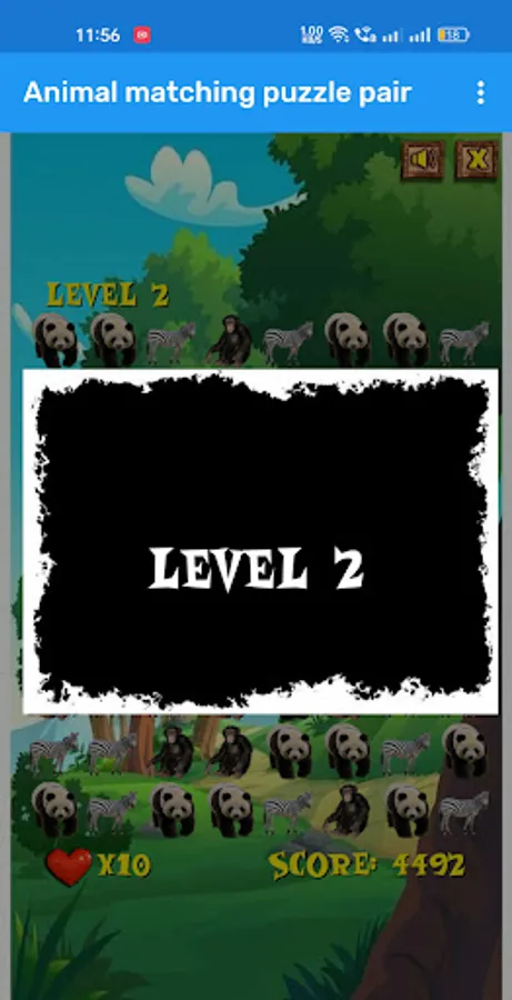 The game progresses as you clear more pairs, gradually increasing in complexity. You'll encounter new levels with additional tiles and a wider variety of animals. With each level, your memory skills will be put to the test, as you try to recall the positions of the previously revealed tiles.
