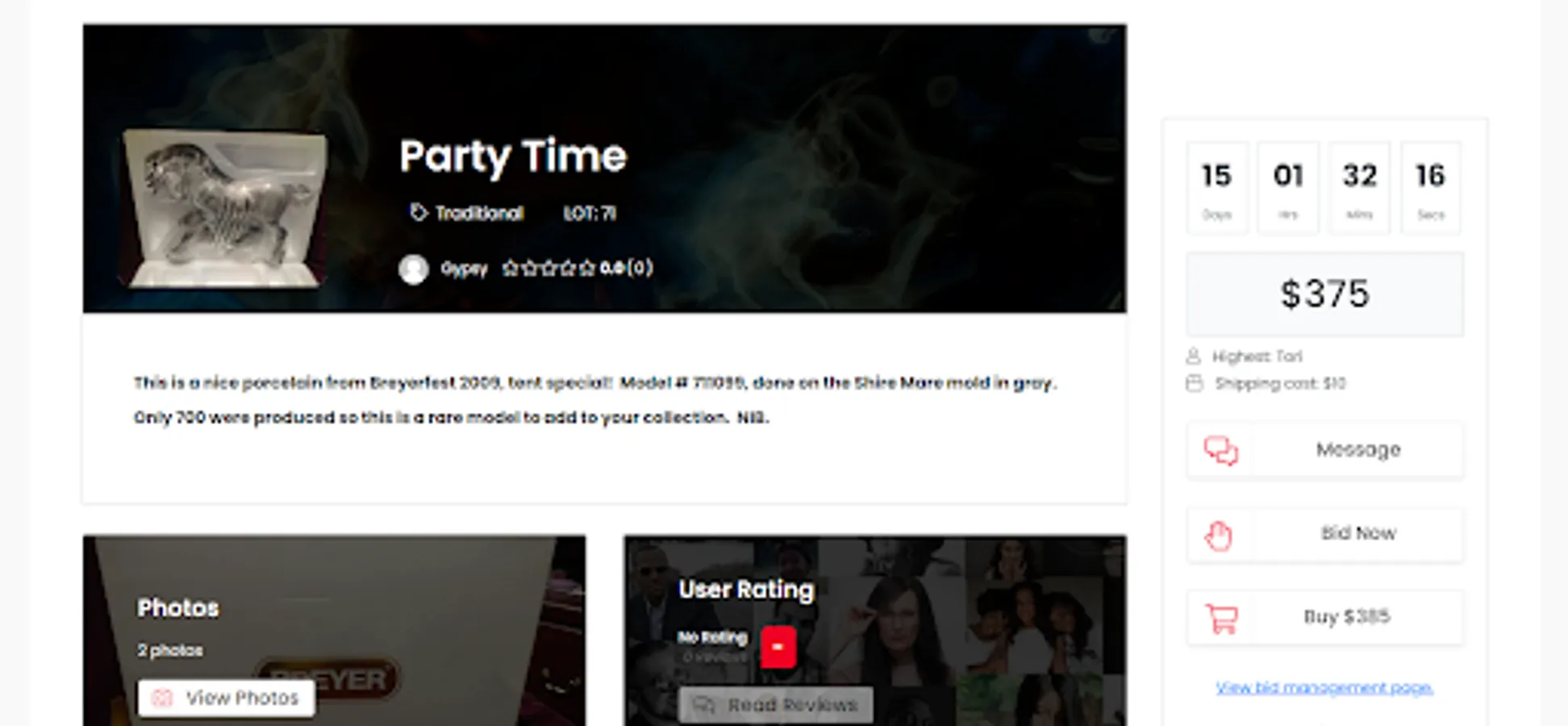 Breyer Auction offering you post your free auction in standard auction