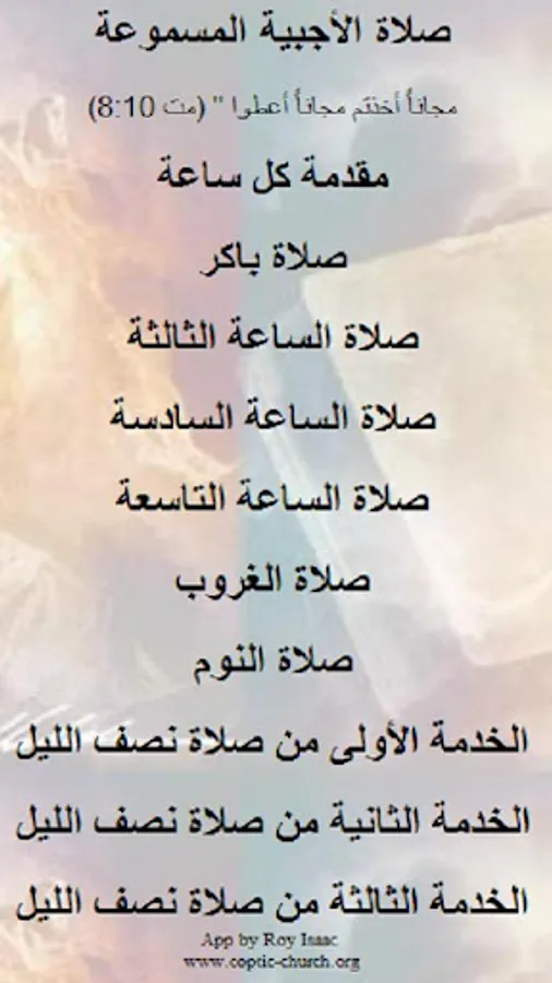 This application is the original Coptic Orthodox Agpeya of the 7 hour prayers.