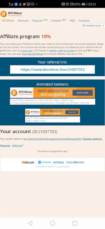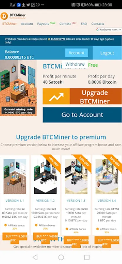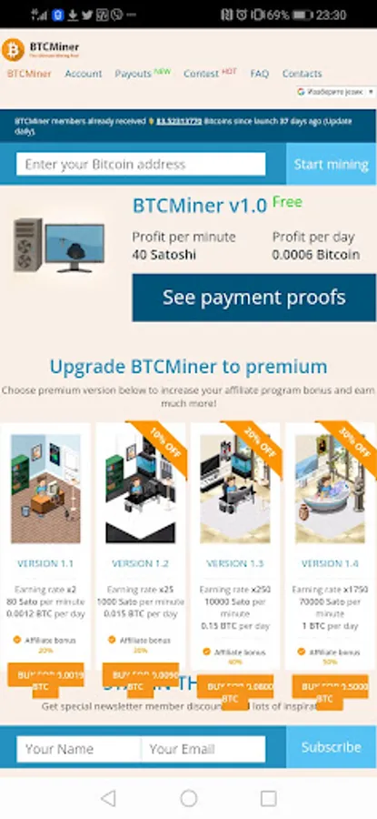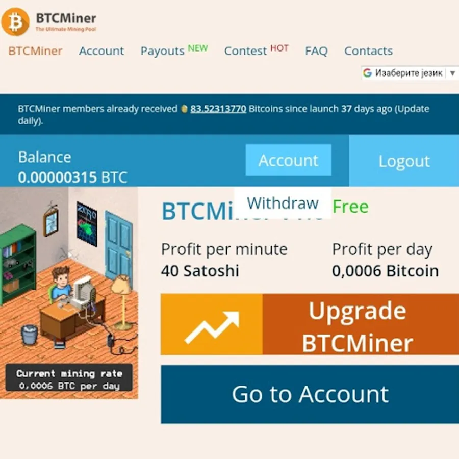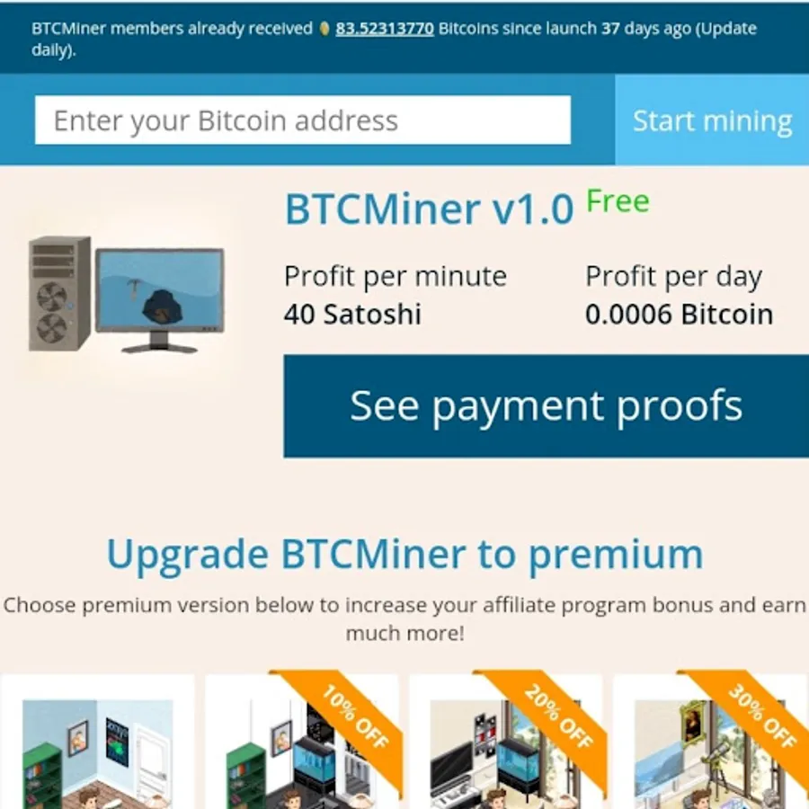Start free mining with BTCminer, enter just your Bitcoin address and start mining today for free, get 40 satoshis per minute.