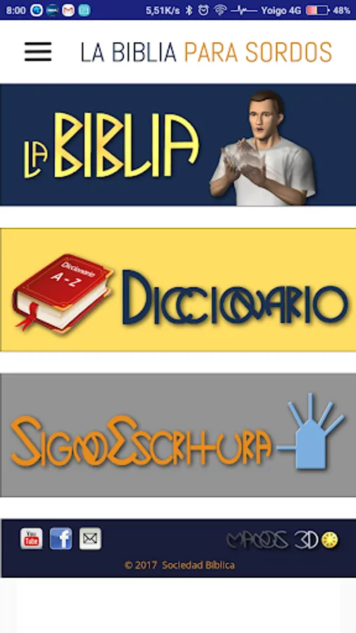 The Bible in sign language Spanish and Catalan in which we make available to deaf people the Book of books. Translation compared to the oldest texts in the original languages, translated by a team of deaf and hearing and reviewed by experts and groups of deaf.
