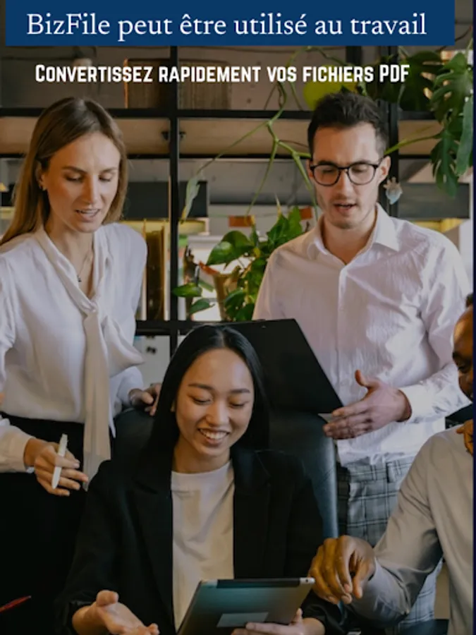 BizFile est une application qui t'offre la possibilité de convertir facilement vos fichiers PDF en Word, Word en PDF, JPG en PDF, PNG en PDF...