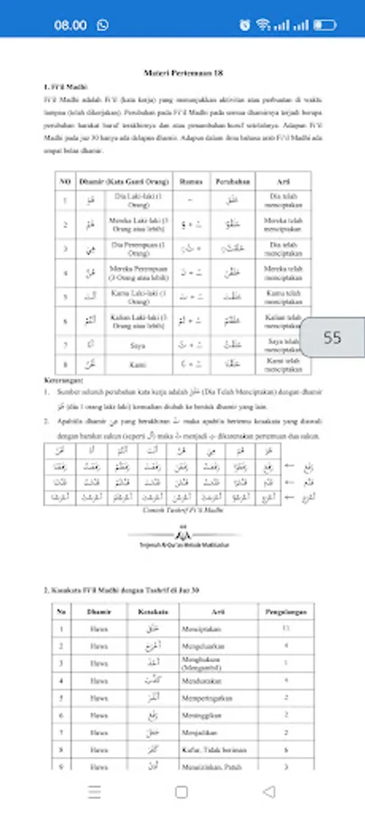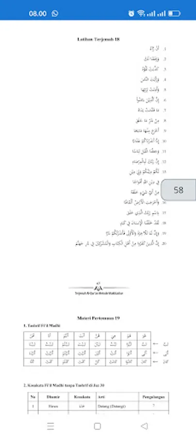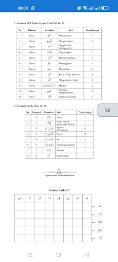 Book Contents: Arabic Theory, Vocabulary in Al-Qur'an Juz 30, Translation Practice, Tashrif Practice