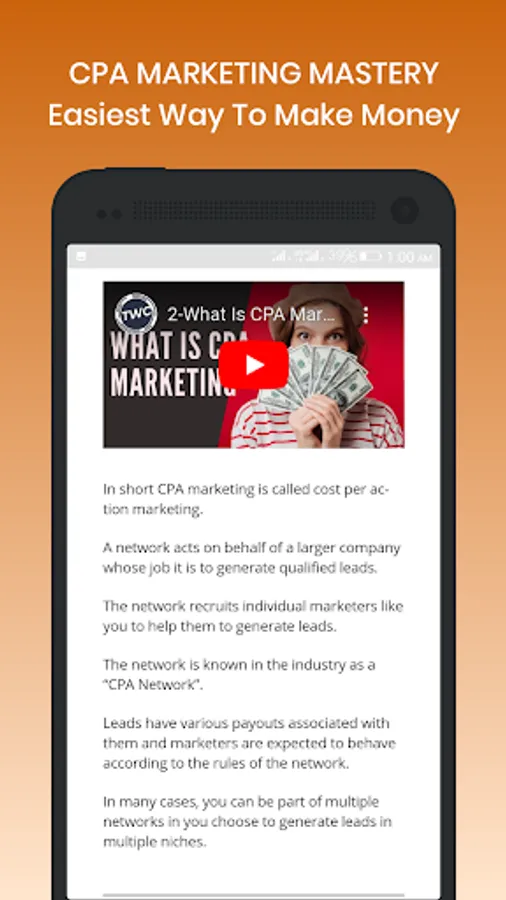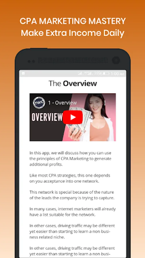 In this app, we will discuss how you can use the principles of CPA Marketing to generate extra income from home.