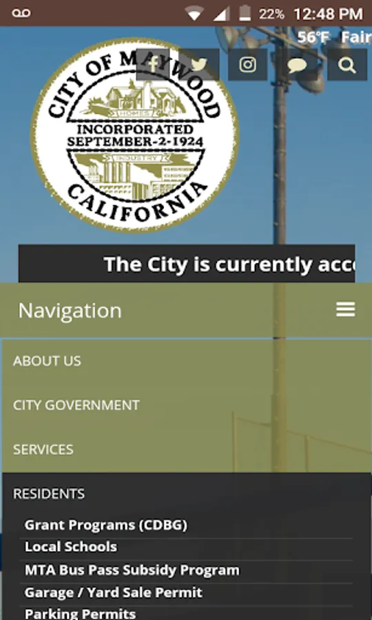 The City of Maywood app is an easy way to access information from the city of Maywood website. You can now access the information you are looking for from the home screen of your mobile phone..On September 2, 1924, Maywood citizens voted to incorporate. By 1924, the population of Maywood had reached 1,000. The city featured homes, stores and a movie theater. Maywood celebrated its 25th Anniversary in 1949 with a rodeo, beard-growing contest and professional wrestling matches in the City park.
