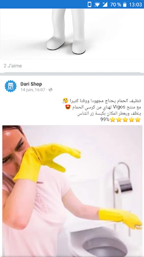 dari shop est une page Facebook sous forme d'application créer pour le but de partager les nouveauté des produits de propreté