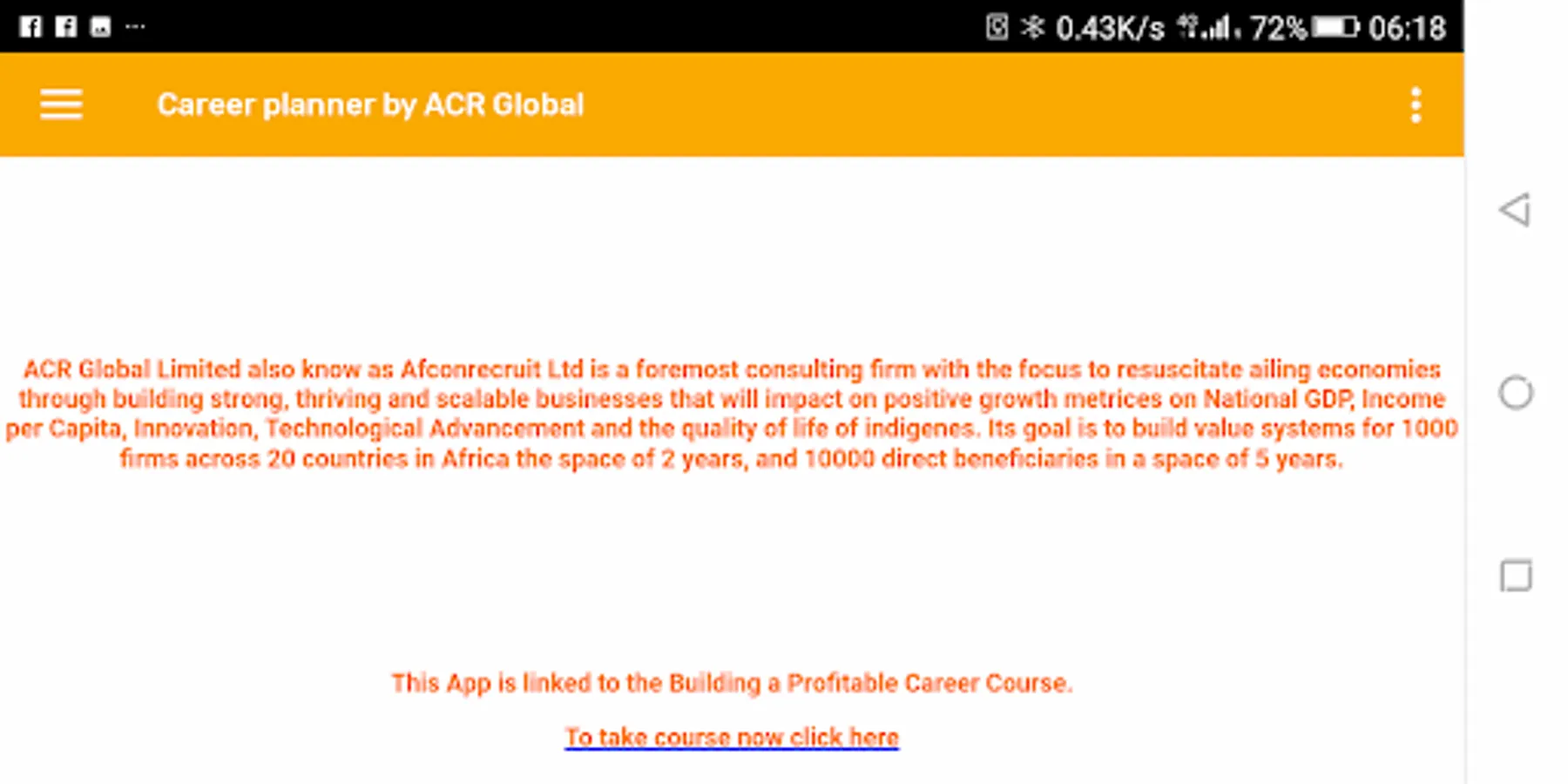 ACR Global Limited also know as Afconrecruit Ltd is a foremost consulting firm with the focus to resuscitate ailing economies through building strong, thriving and scalable businesses that will impact on positive growth metrices on National GDP, Income per Capita, Innovation, Technological Advancement and the quality of life of indigenes. Its goal is to build value systems for 1000 firms across 20 countries in Africa the space of 2 years, and 10000 direct beneficiaries in a space of 5 years.