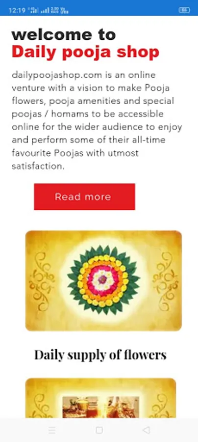 Dailypoojashop is an online venture with a vision to make Pooja flowers, pooja amenities and special poojas / homams to be accessible online for the wider audience to enjoy and perform some of their all-time favourite Poojas with utmost satisfaction.