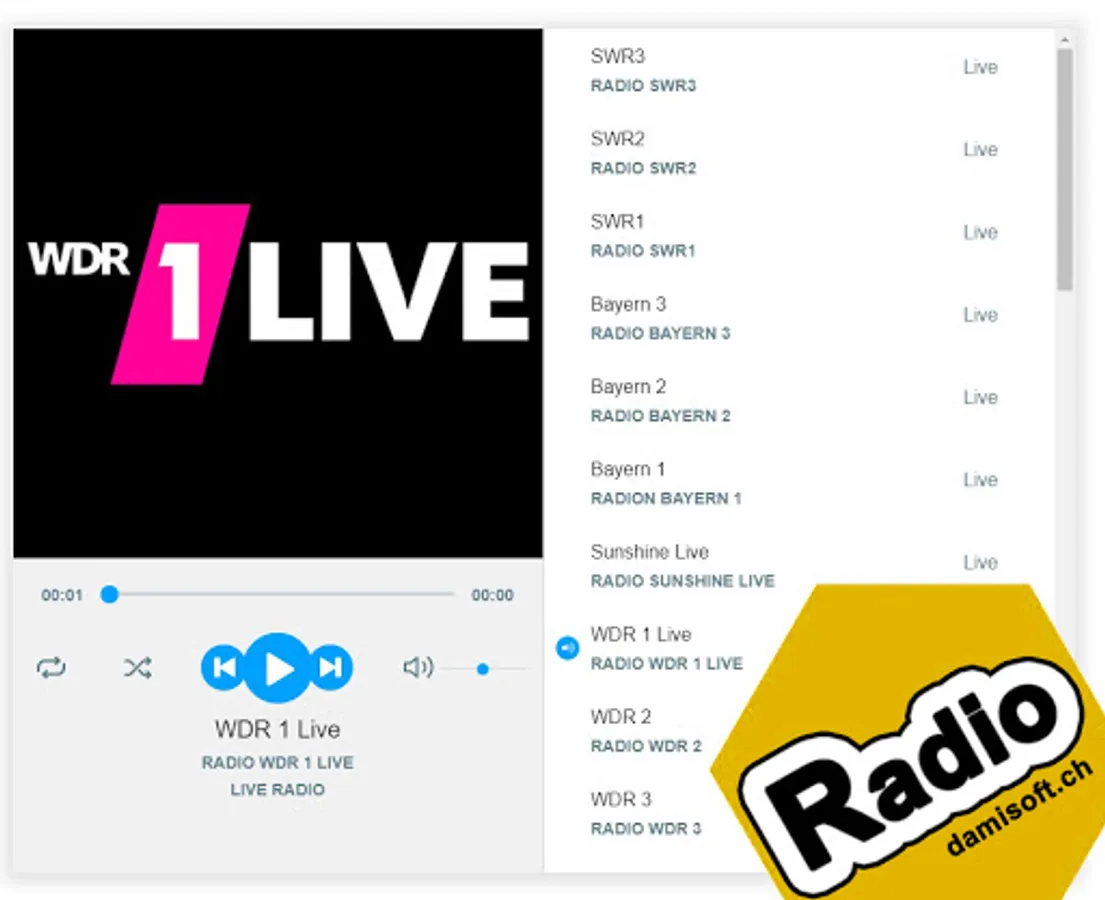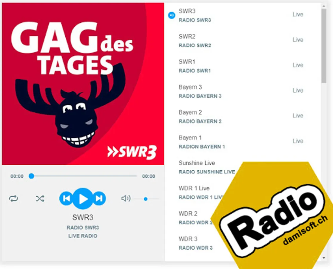 With the Damisoft Radio App you can listen to numerous and free radio stations throughout the German-speaking area. The live streams are updated daily. Each radio station is also freely available on the Internet. With just one click you can listen to your favorite radio station live.