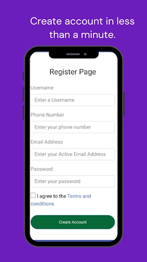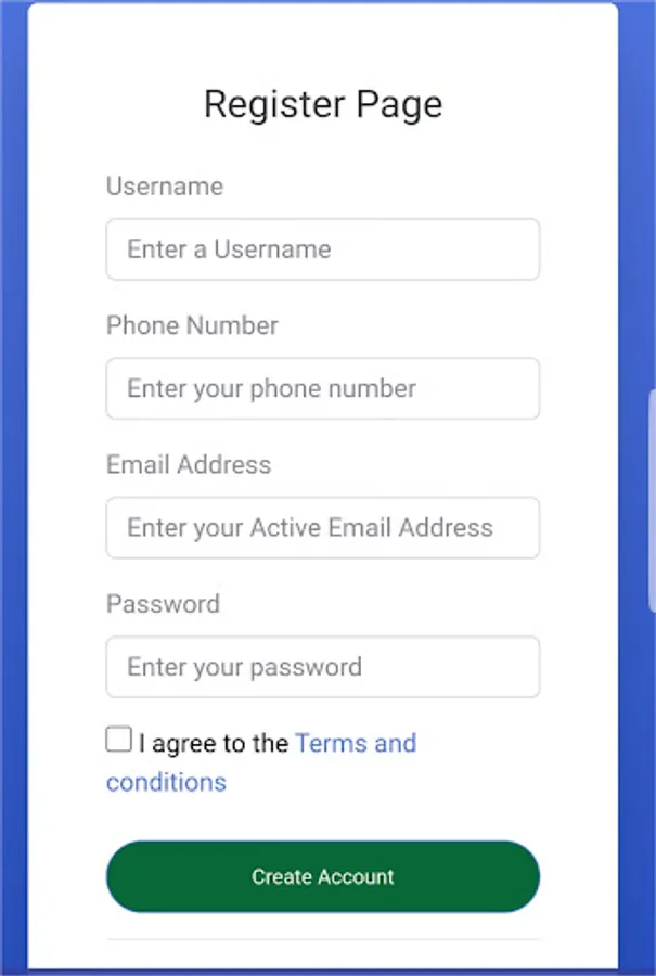 All you need to do is to click on "Create Account", fill in the form with your appropriate information using your active email address and phone number with a password you can easily remember.