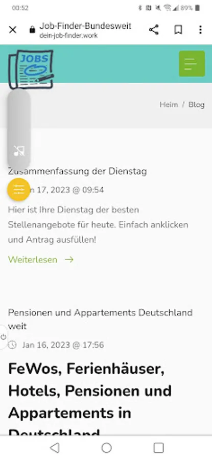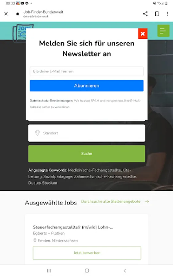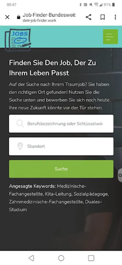 enables the largest selection of job offers on the Internet. The Dein-Job-Finder app is free and there is no obligation to register to use our service. Dein-Job-Finder has around 23 million job offers from all over the world, of which almost 1 million are published throughout Germany.