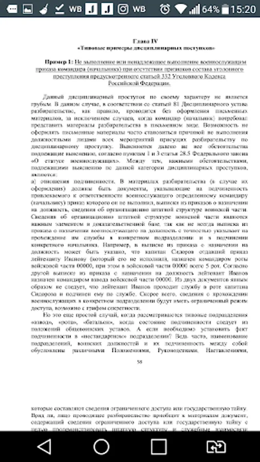 Пример 1: не выполнение или ненадлежащее выполнение военнослужащим приказа командира (начальника) при отсутствии признаков состава уголовного преступления предусмотренного статьей 332 Уголовного Кодекса Российской Федерации