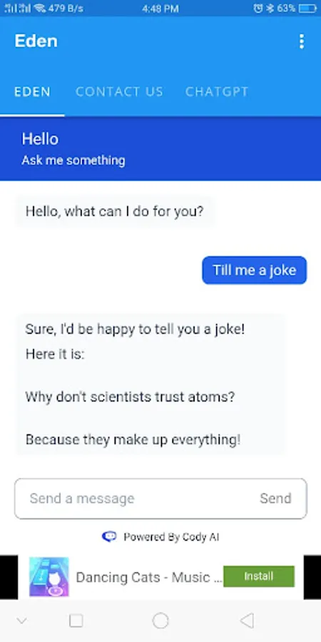 AI trained bot called Eden everything you will get what you want from ChatGPT and you can also use ChatGPT in this app.