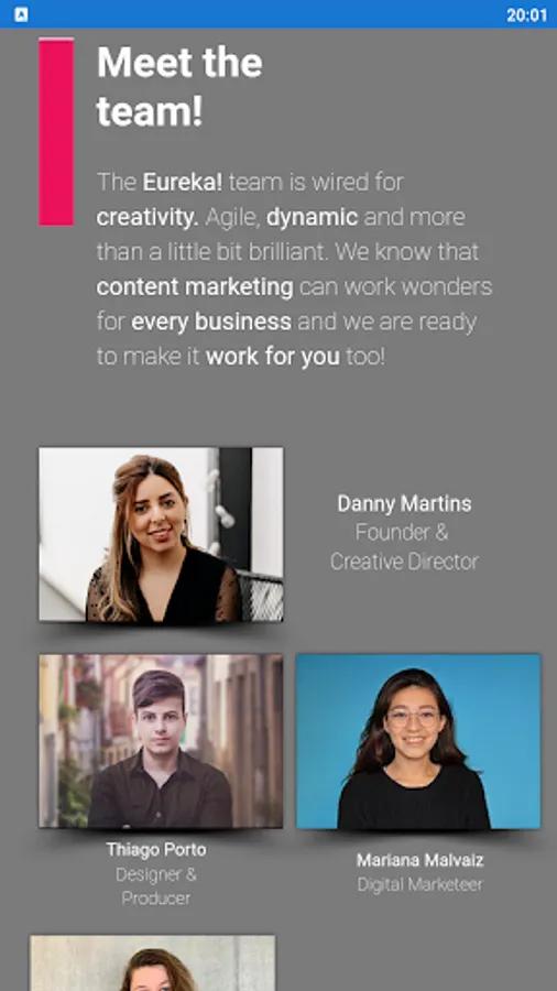 We are a social selling agency. The Eureka! team is wired for creativity. Agile, dynamic and more than a little bit brilliant. We know that content marketing can work wonders for every business and we are ready to make it work for you too!