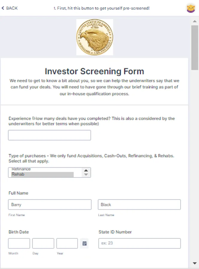 GEF NON-Owner Occupied Mortgage Pre-Qualifier