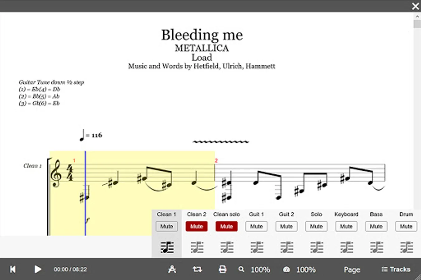 2. Upload your own tablature file in Guitar Pro format and view it through tab player